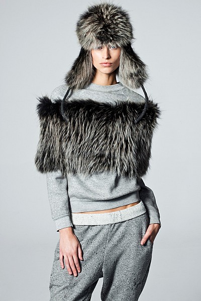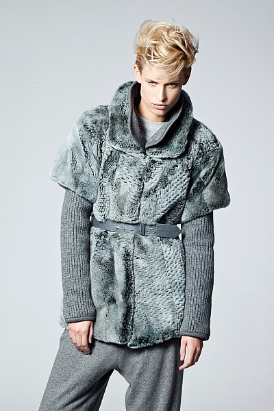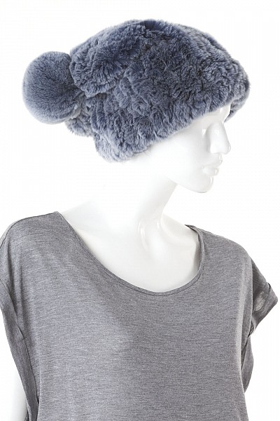 TRITON BLUE BEAVER PONCHO WITH KNITTED REX RABBIT HOOD
