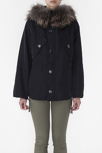 Verena Black Short Parka with rex rabbit lining