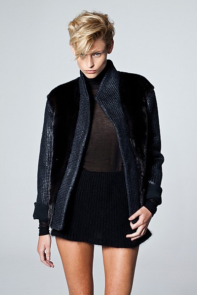 Valeria Smoke Black Racoon and Leather Jacket